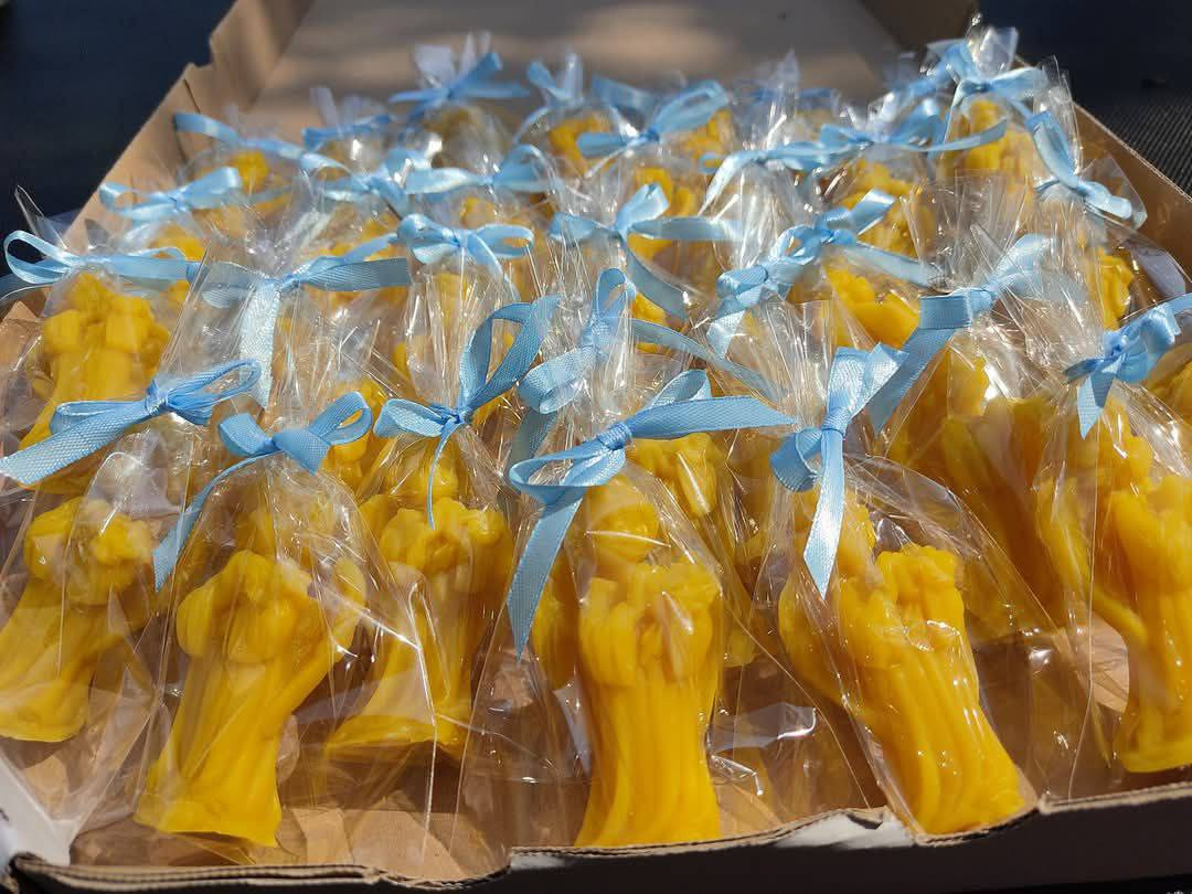 Пасека производит следующие сорта меда:рапсовый, майский,подсолнечный,гречневый. Так же и продукты пчеловодства: прополис, пыльцу и выливает ароматные восковые свечи.